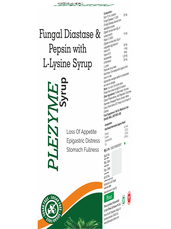 - Thus, Plezyme syrup promotes the digestion of carbohydrates and proteins and helps ab.